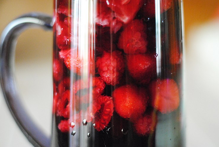 Je bois de la Sangria normale mais j'aime aussi la faire à la framboise. Je cherchais JUSTE un titre pour cette recette (et désolée mais pas mal de mecs feront un peu la gueule avec des fraises et des framboises dans leur sangria)…