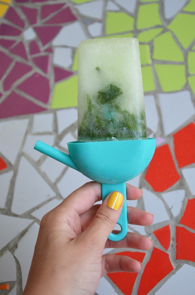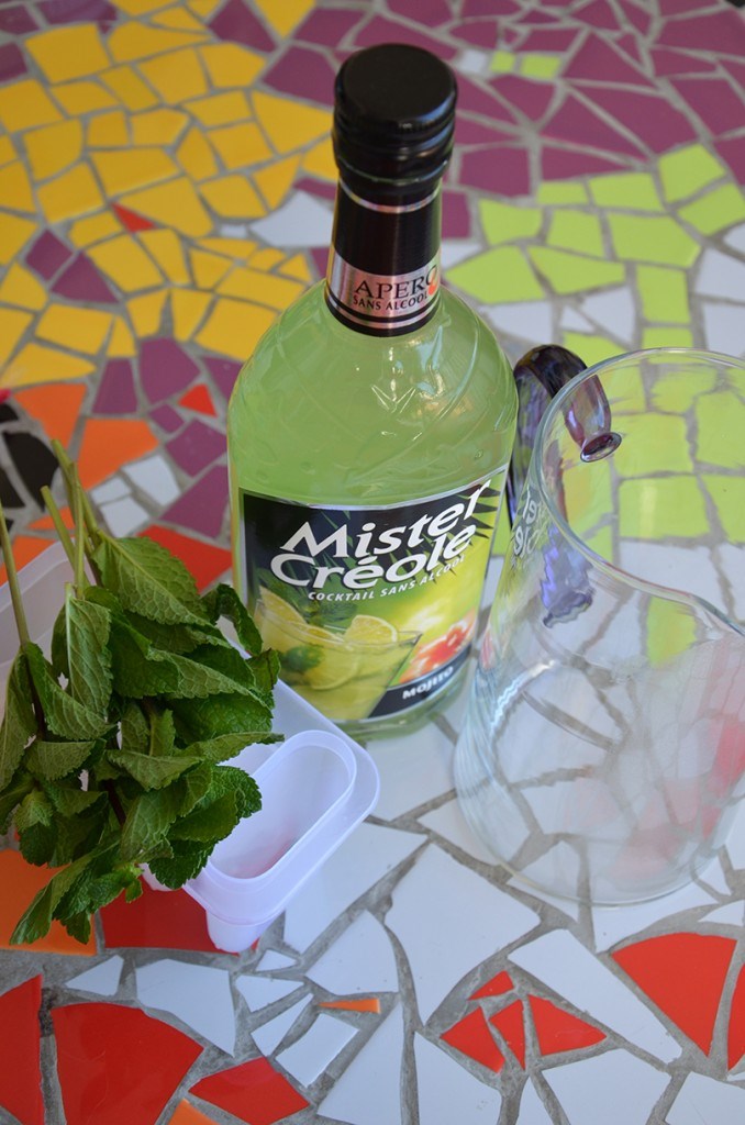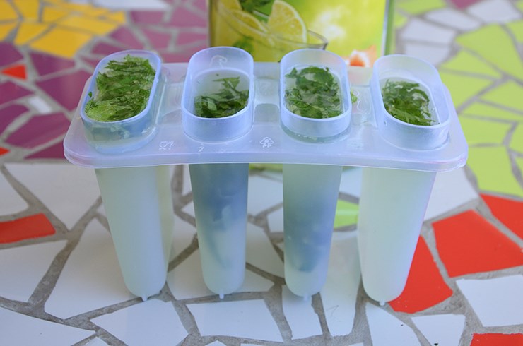 Une dernière préparation qui sent l’été? Des popsicles mojito (sans alcool). Pour faire ces glaces je cherchais à la base un mélange spécial mojito pour lequel il ne reste plus qu’à verser un peu de rhum (pour ceux qui cherchent à composer des cocktails). Une erreur en faisant mes courses et je me suis retrouvée à acheter ce cocktail sans alcool imitant le goût d’un mojito alcoolisé. J’ai donc utilisé cette préparation pour en faire des popsicles avec un peu de menthe fraîche hachée + 6h au congélateur et le tour est joué 😉
