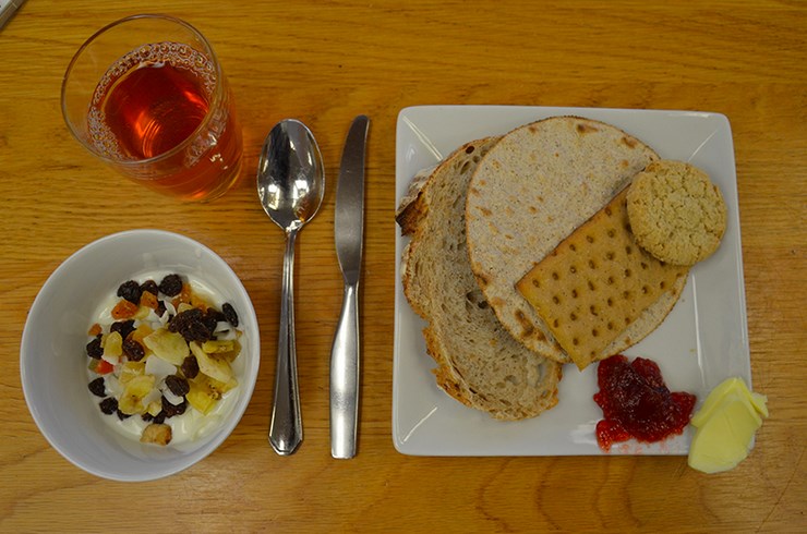Des tartines (je me suis tout de même essayée au pain Suédois) et du yaourt au muesli.