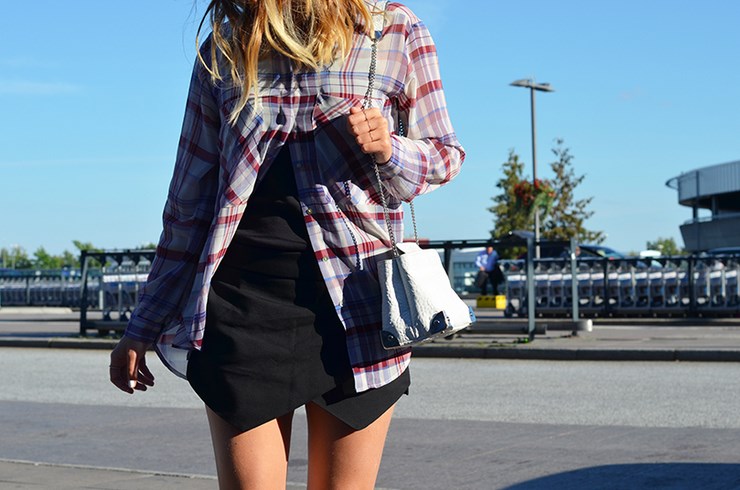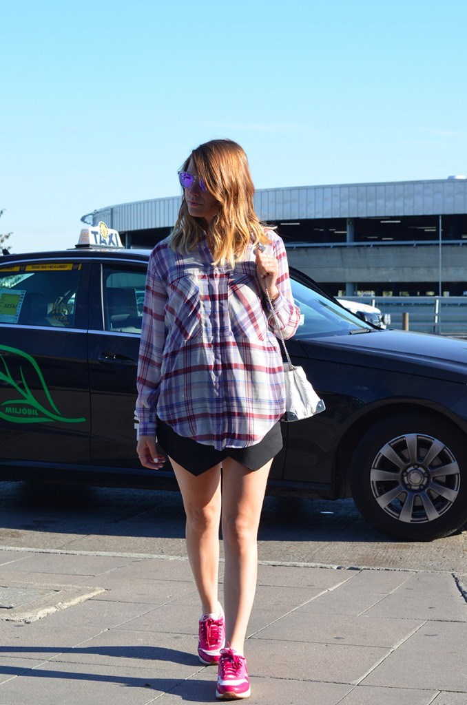 2ème jour, 2ème look : Chemise, short et sac Zara, lunettes Oakley et Nike Air Max.