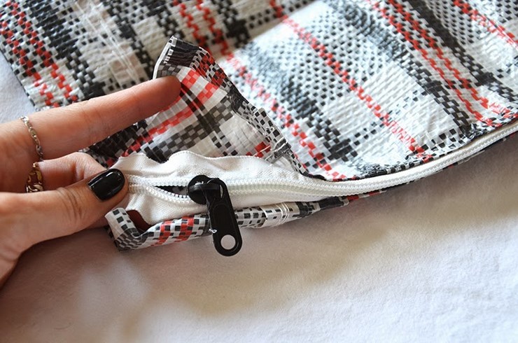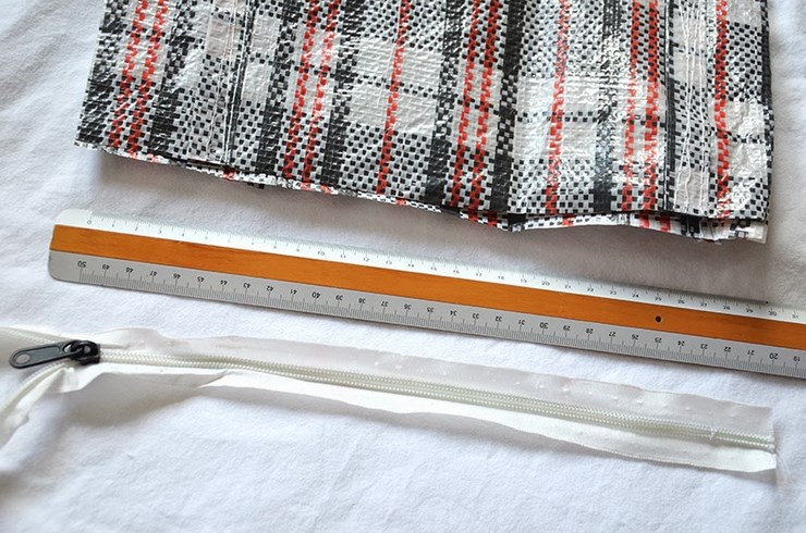 Il ne reste plus qu’un côté à terminer, celui de la fermeture. Avec une règle évaluez la bonne longueur du zip. C’est-à-dire la largueur de la pochette + 3 cm.