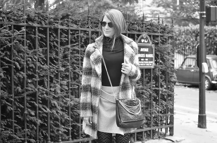 Question look : mon nouveau manteau tartan, la jupe porte-feuille parfaite et mes cheveux coincés dans mon col roulé. J’ai envie de changements capillaires ! Ça tombe plutôt bien, j’ai rendez-vous cet après-midi chez le coiffeur 🙂
