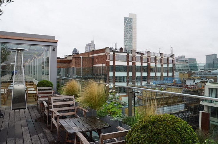 À quelques rues de ce restaurant, mon hôtel ! Le Boundary. Cerise sur le gâteau : une terrasse au dessus de l’immeuble ! La vue sur la City était imprenable et j’ai adoré toute la verdure. Je recommande les cocktails sans alcool.