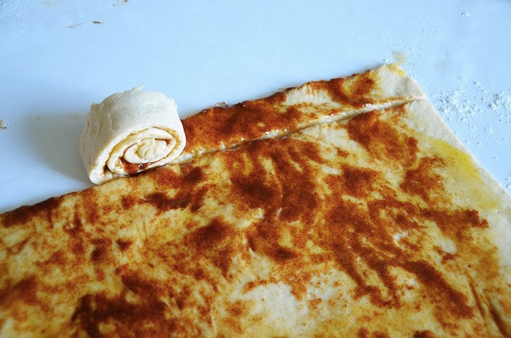 2/ tartine le tout sur ton rectangle de pate, roule l'ensemble dans un long boudin, et decoupe les escargots a partir de ton boudin 🙂 plus rapide, et t'es sur qu'ils auront tous la meme taille!
