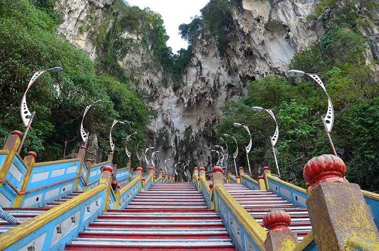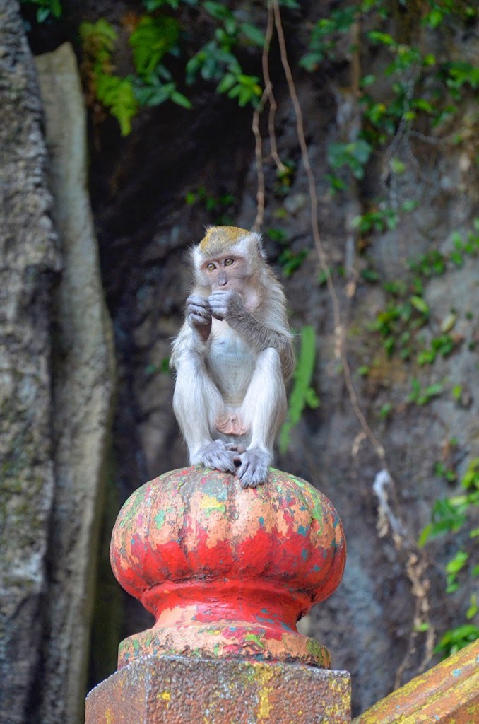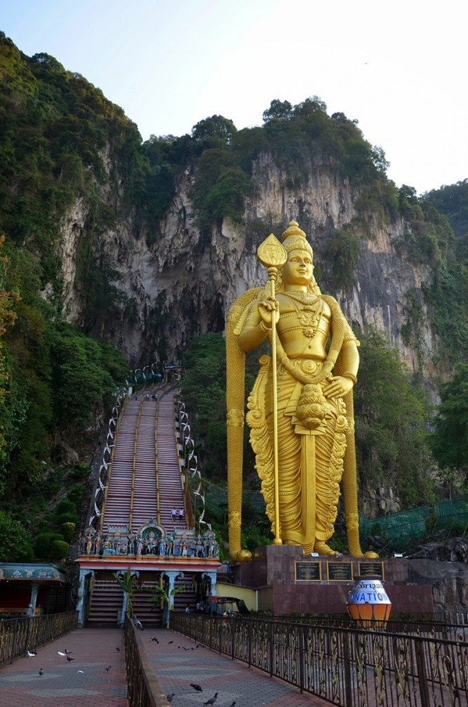 Encore en décalage horaire nous nous sommes levés très tôt pour ce premier jour de visite. Pour éviter les touristes et la chaleur nous avons commencé par Batu Caves. Depuis le métro KL Central un train nous a conduit au pied du temple. 272 marches pour atteindre les grottes ! Je vous conseille de faire comme nous et de vous y rendre tôt, la monté est plus simple et la découverte plus agréable quand on est presque seul. Ne sortez pas votre casse croute ou votre téléphone dans les escaliers, les petits singes sont très mignons mais chipeurs.Le métro est le plus souvent aérien, très agréable.