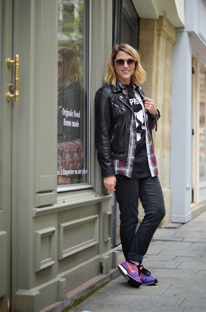 Hier je vous présentais ici la collection Nike x Liberty. Aujourd’hui un look printanier avec aux pieds l’une de mes paires de Nike favorites. Ce genre de tenue est presque devenu un uniforme ! Je porte énormément ce perfecto en ce moment, avec une chemise ouverte et surtout un pantalon roulotté sur les chevilles. Et vous, qu’elle est votre tenue type, votre uniforme du moment ?