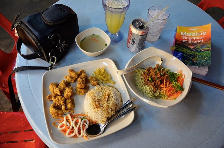 Déjeuner dans un food court trouvé au sommet de Penang Hill.