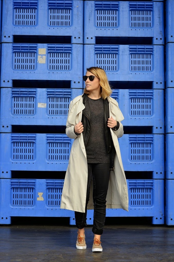 Trench H&M, perfecto IKKS, top Primark, jean G-Star Raw, sac Fossil, lunettes G-Star, bracelet Liberty, et Vans via Sarenza.