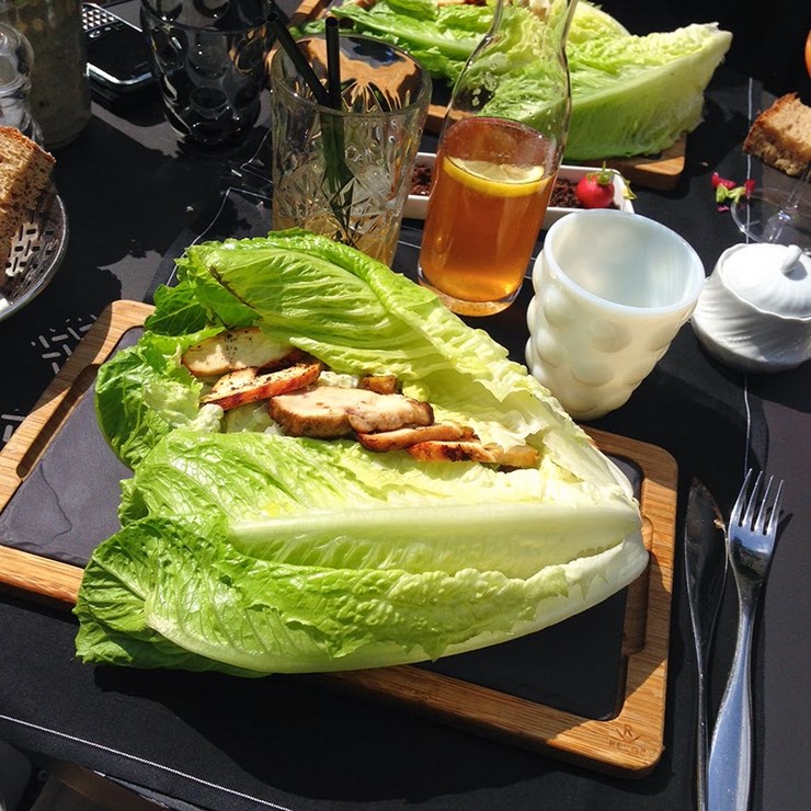 J’ai déjeuné au W hôtel cette semaine. Sans grande originalité j’ai commandé une salade César et un thé glacé. Jusque là rien de bien folichon. Et là, la surprise. La salade m’a été servie DANS une salade ! J’ai adoré la présentation. Mais surtout elle était délicieuse, avec ses croutons au curry. Un super moment passé en terrasse.