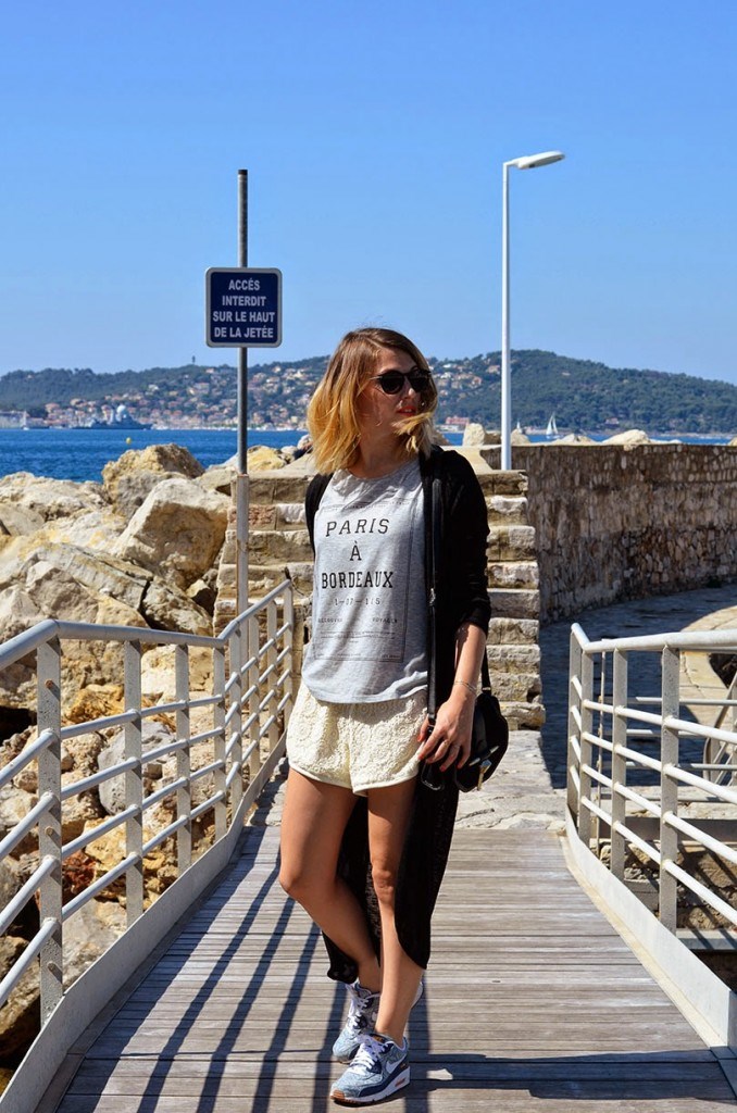 Pour ce look j’ai choisi un petit port prêt des plages Mourillon. Une tenue de Printemps comme je les préfère : short et sneakers. Par contre vous ne connaissez pas encore ce gilet. Ce mois-ci j’ai décidé de trouver de chouettes gilets noirs et j’en ai déniché 3 parfaits dont celui-ci. Long et fin, je sens qu’il va vite devenir une pièce incontournable de mon dressing d’été ! Qu’en dites-vous ?