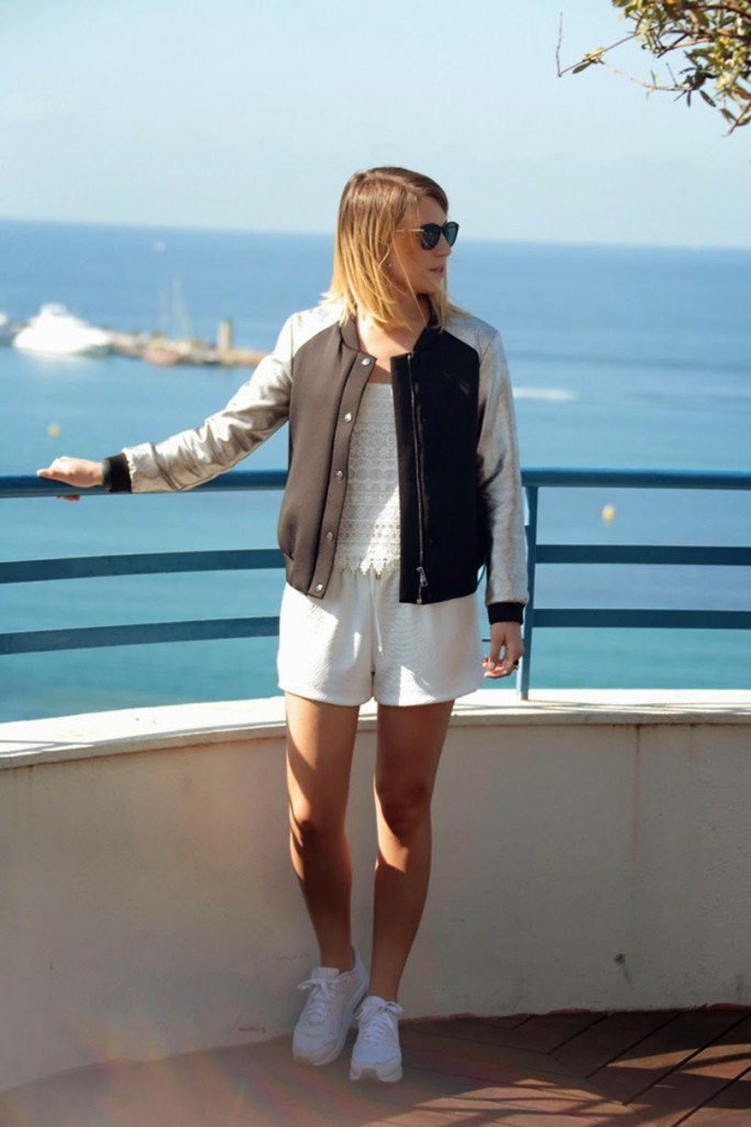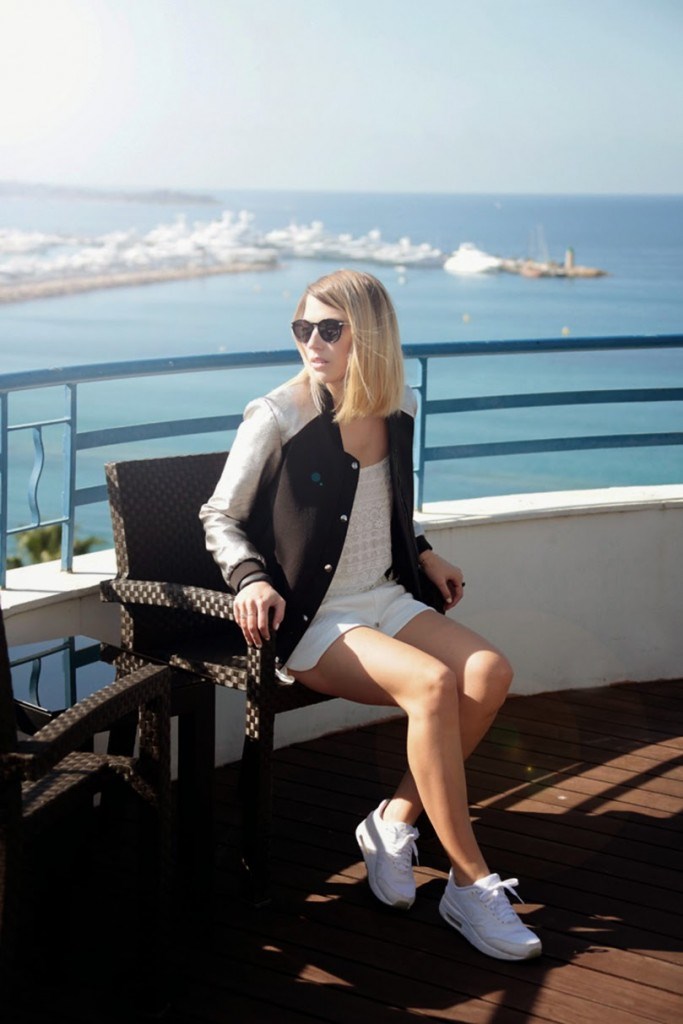 Veste Gat Rimon (été 2013), top, short et bijou de main H&M, lunettes G-Star et Nike Air Max 1