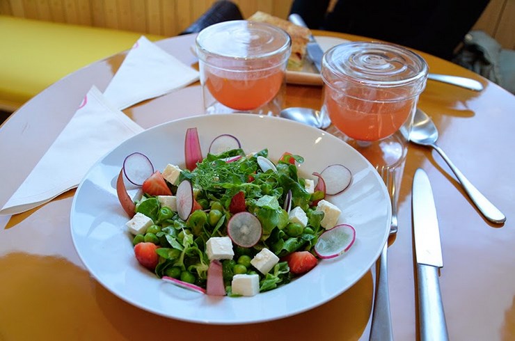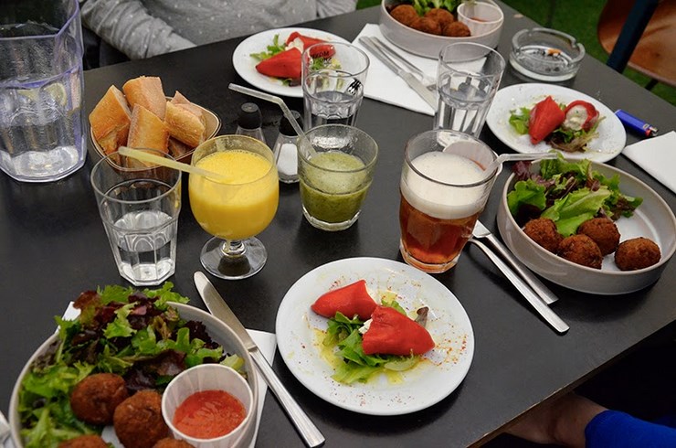 Ce café est caché dans le 104. Fausse herbe au sol, lieu immense et carte originale. Pour 13€ vous pouvez choisir 3 plats sucrés et/ou salés. J’ai pris ce jour-là des piquillos, des boulettes et des fraises. Les assiettes sont fraiches et j’aime beaucoup l’idée de pouvoir goûter à tout et partager ses assiettes avec ses amis.