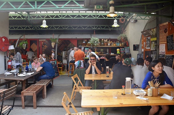 Ton adresse "la parenthèse" au marché des enfants rouges me fait beaucoup penser à un endroit similaire dans Camden Town à Londres ! On s'enfonce un peu dans le marché, entre les stands, il y a des boutiques de photos, de cupcakes & de fudge, et soudain on arrive si l'on cherche bien dans une grande cour où sont installés des stands de nourritures du monde entier: afrique, argentine, pérou, thaïlande, plats végétariens ou hot dogs, il y a plein de choses et l'on est vite dépaysé ! Et il y a au milieu de tout ça de grandes tables avec des bancs que l'on partage avec des inconnus 🙂 L'ambiance est géniale, c'est un endroit vraiment sympa.