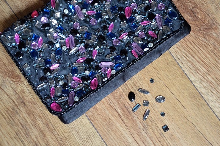 Pour les strass, j’ai déniché une vieille pochette dans un placard et j’ai récupéré quelques strass.