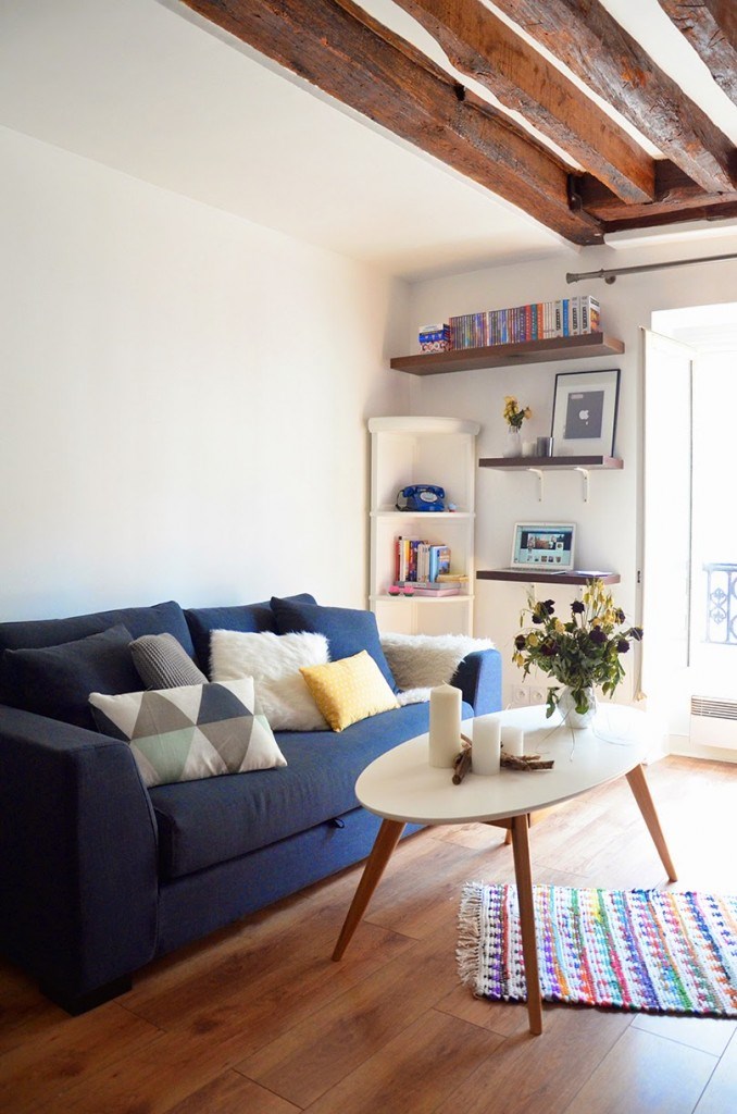 Ton salon est top, et puis les poutres donnent beaucoup de cachet à cet appart je trouve ! Ca rappelle les maisons de chez nous 🙂