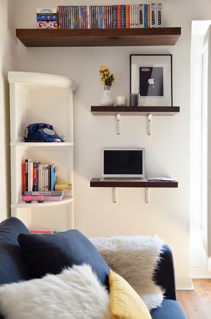 Un conseil pour tes étagères : peins-les en blanc. Elles s’intégreront mieux à ton intérieur ça t'apportera encore plus de luminosité. C'est ce que je ferai !