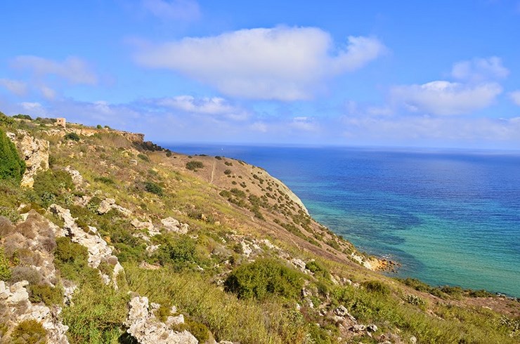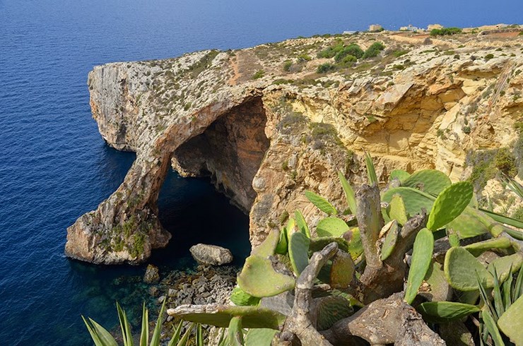 À Ix-Xagħra, Calipso cave offre une vue panoramique sur Ramla I-Hamra.