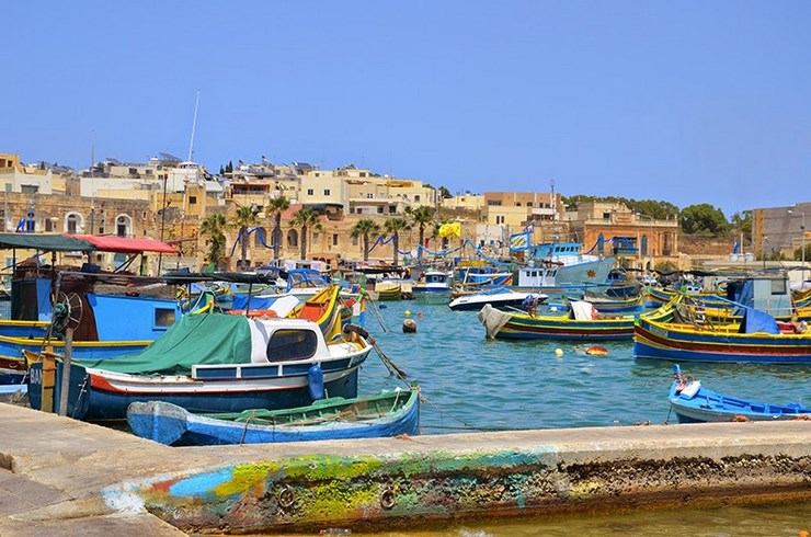 Marsaxlokk, un village de pêcheurs typique de Malte. Baladez-vous sur le port, découvrez les centaines de bateaux colorés et installez-vous en terrasse. De nombreux restaurants servent du poisson frais.