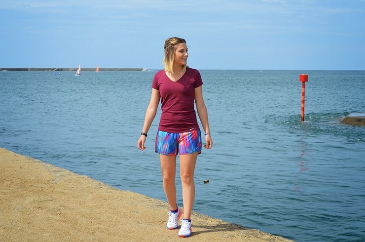 L’année dernière j’avais pour courir un poom poom short moulant. Un vêtement sportif que je n’ai pas aimé porter ! Personnellement quand je cours je préfère être couverte et maintenue. Dans un short serré je suis hyper mal à l’aise. Cet été j’ai testé ce bas ample qui cache une culotte intérieure. Maintenue et surtout pas moulée j’ai trouvé la pièce estivale parfaite.