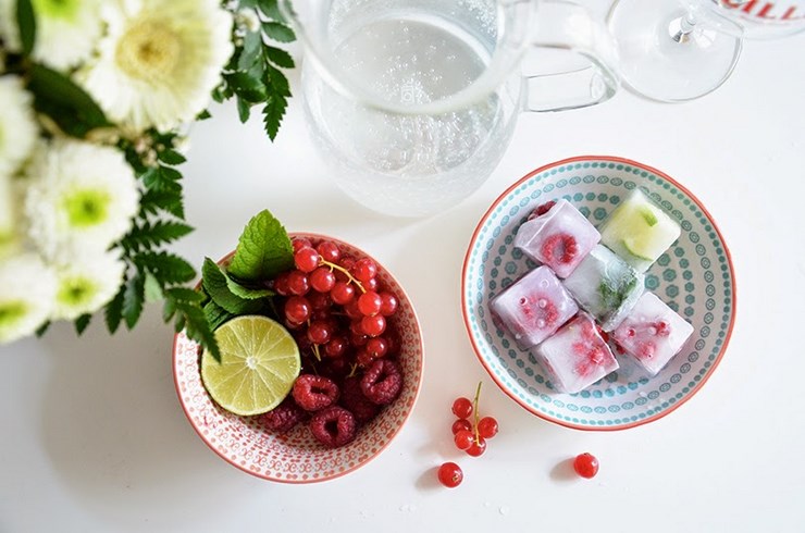 Pour la déco (et le goût) amusez-vous avec les glaçons. Au moment de remplir le bac avec de l’eau déposez des feuilles de menthe, des groseilles, une framboise ou encore un petit bout de citron.