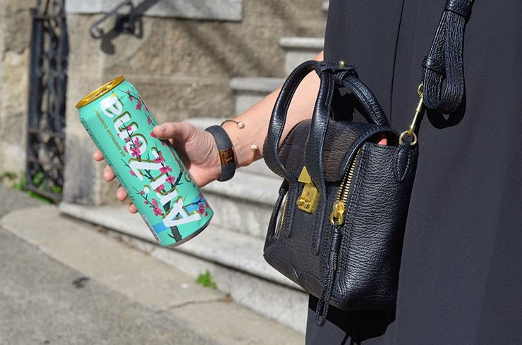 Robe Forever 21, gilet VILA, sac 3.1 Phillip Lim via Monnier Frères, lunettes G-Star, bracelet Fossil et fuelband