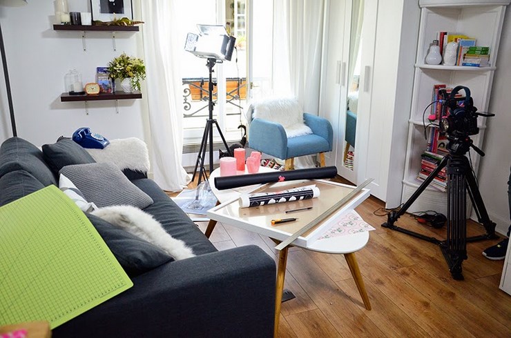 Le premier jour de tournage l’équipe s’est installée dans le salon puisque presque toutes les vidéos ont été tournées ici. Chaque soir le matériel était laissé sur place.