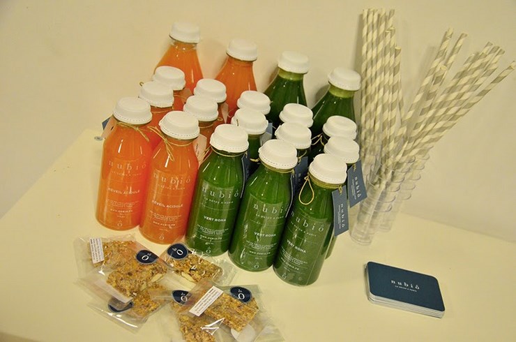 Ensuite, dégustation de snacks et de jus de fruits frais pressés à froid proposés par Nubio. Quel délice ! Les filles sont toutes reparties avec le mélange PURE de Lov Organic et leur tenue Nike.