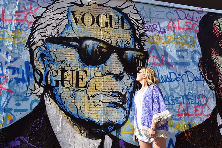 En remontant Sunset boulevard nous avons découvert de nombreux graff dont celui de ALEC et son Karl Lagaerfeld.