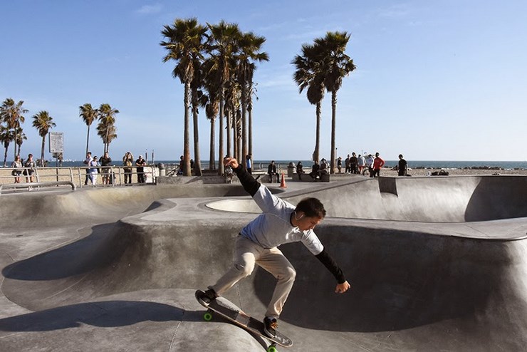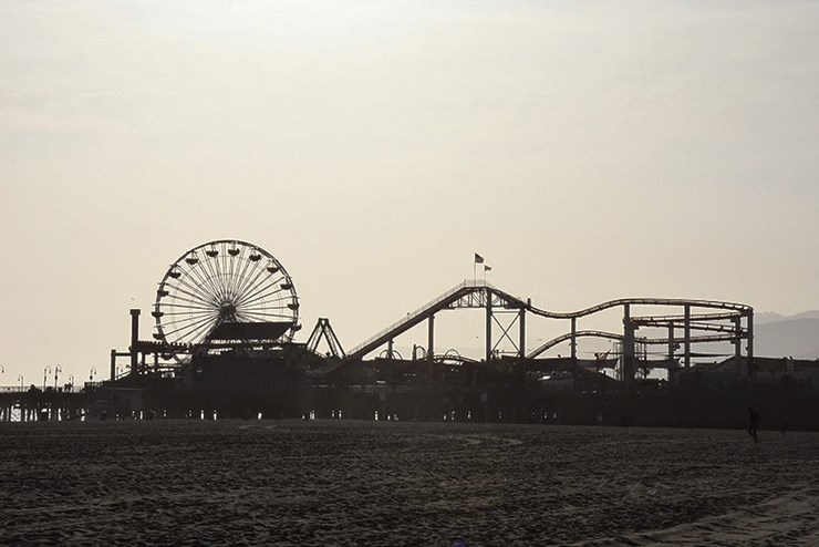 Location de vélos au pied du Santa Monica Pier. Tranquillement nous avons longé Santa Monica puis Venice Beach. De belles maisons, Muscle beach, le skate park que l’on aperçoit souvent dans 90210 et sur le retour le parc d’attractions du Santa Monica Pier. Une balade vraiment sympa et apaisante.