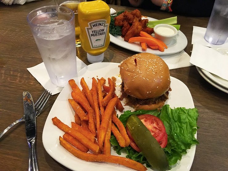 Deux heures pour rejoindre Santa Barbara. Tout ferme tôt la semaine… par défaut nous avons diné chez Brew co et chouette surprise. Devant un match de basket j’ai mangé un délicieux pulled pork sandwich et des frites de patates douces sur State street qui est un peu LA rue centrale de Santa Barbara.
