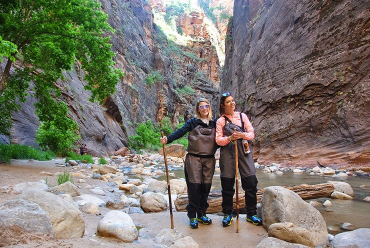Premier stop à Zion pour découvrir les Narrows. Nous avons loué des chaussures anti-dérapantes (indispensables je trouve) et des combinaisons pour cette balade. Que dites-vous de nos styles imparables ?