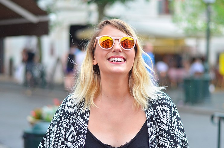 Je remarque que le sourire change tout sur mes photos. Ceux qui me suivent ici depuis longtemps se rappellent que pendant longtemps j’étais avare de sourires dans mes articles. Pourquoi ? J’étais persuadée qu’il était plus cool de copier l’attitude des mannequins ou encore que mon sourire me faisait plisser les yeux et accentuer mes traits.