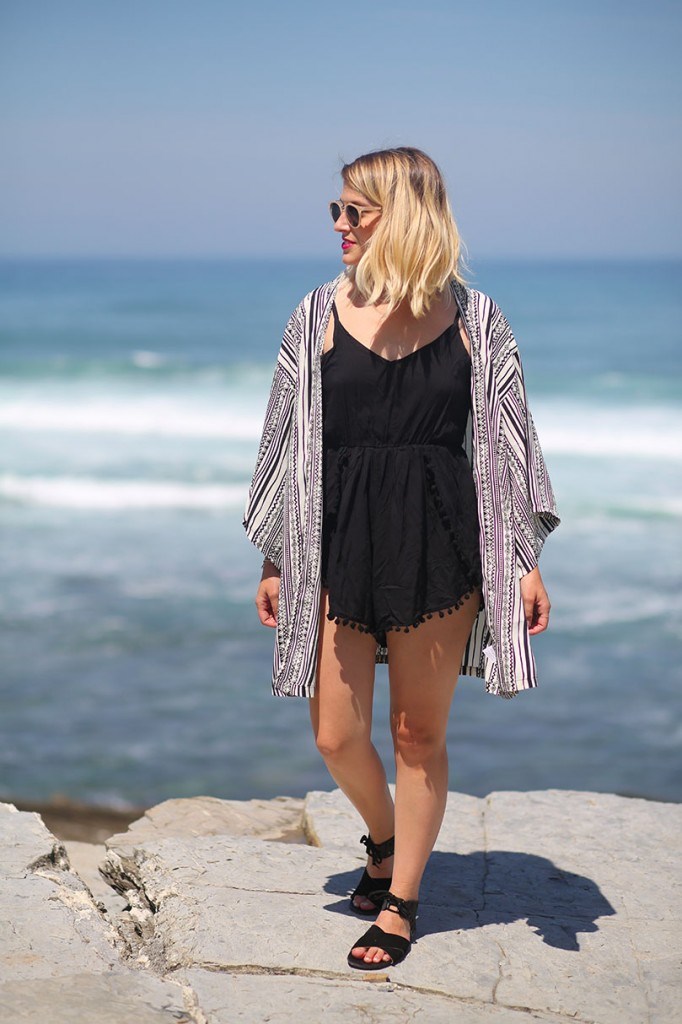 Combi-short Boohoo, kimono Boohoo, sandales Sarenza (customisées ICI depuis),