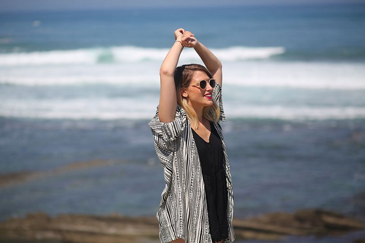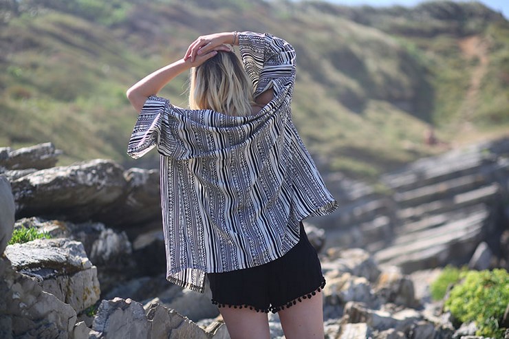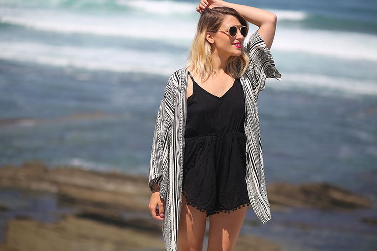 La combishort est trop mignonne avec ses petits pompons ! Et le kimono rend bien avec 🙂