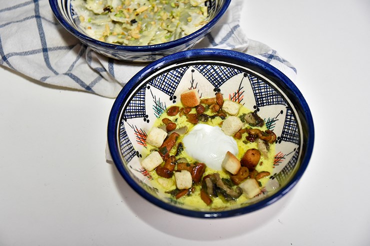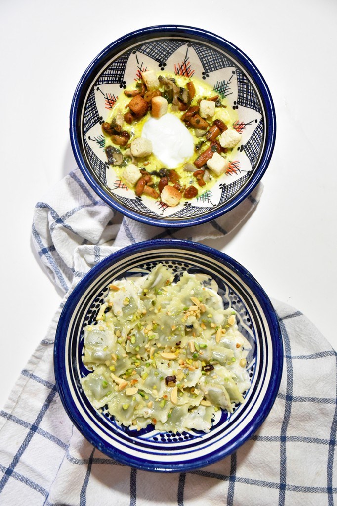 Mais aussi les ravioles au fromage frais et basilic de Provence, sauce parmesan aux épices et œufs fermiers de Loué pochés, fricassée de champignons, sauce au curcuma. 4 plats originaux et vraiment savoureux.