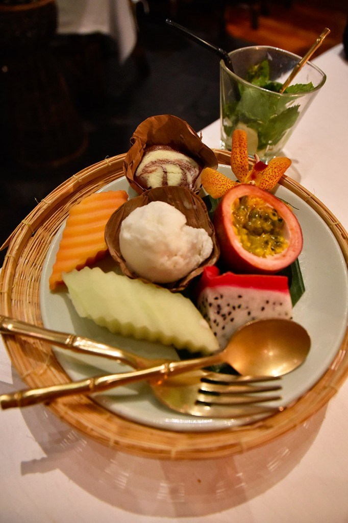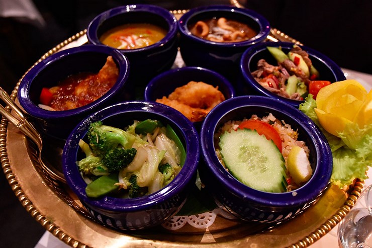 Le prix du menu royal est de 48€. Ces assortiments sont le meilleur moyen de découvrir un maximum de plats tous servis en petites quantités. Moi qui adore goûter à tout et qui n’arrive jamais à me décider… Voir la carte ici. Chaussons à la vapeur, bouchées soufflées, salade, massaman, poisson frit, riz sauté, wok, fruits…
