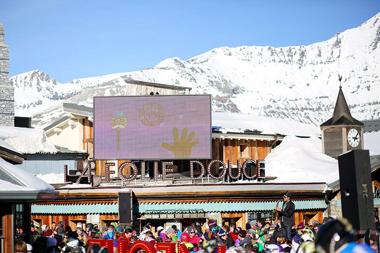 Les shows créent avec le Dj une ambiance délurée; tout ça en pleine journée et les pieds dans la neige !