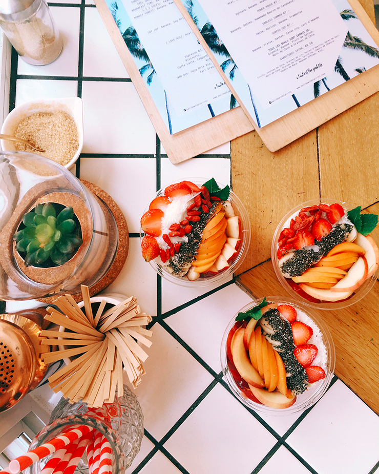 Bali Bowls c’est une toute petite boutique face aux Galeries Lafayette de Biarritz où un adorable italien vivant à moitié à Bali propose des smoothies et surtout des açai bowls.