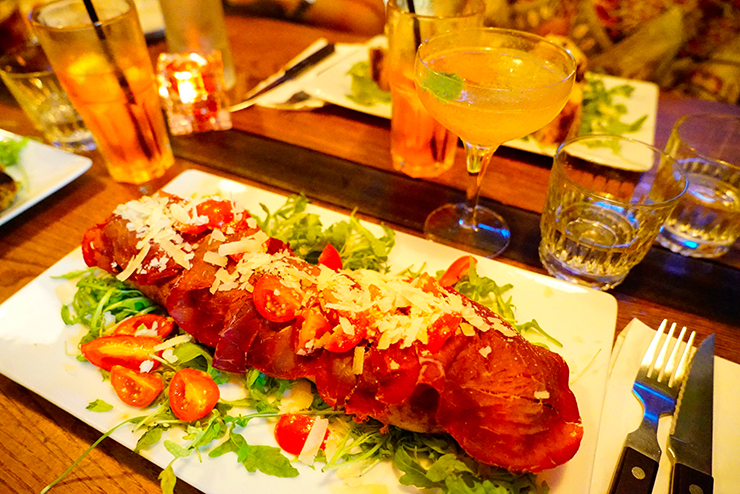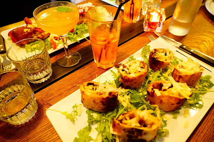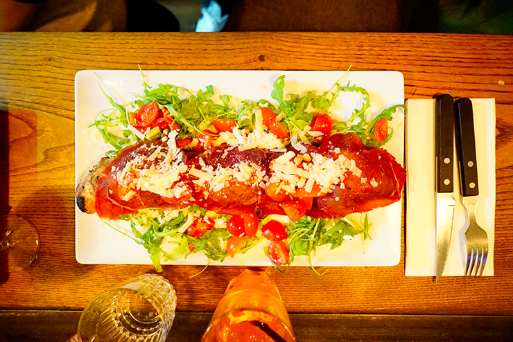 Des pizzas aussi , mais pas n’importe lesquelles. Vous comprenez une fois dans l’assiette. La version tapas (à partager ou parfaite pour un plat) est une pizza roulée comme une wrap puis découpée en bouchées. Mon coup de cœur. Vous avez aussi la version wrap avec de la viande séchée et du parmesan sur le dessus. Délicieux aussi.
