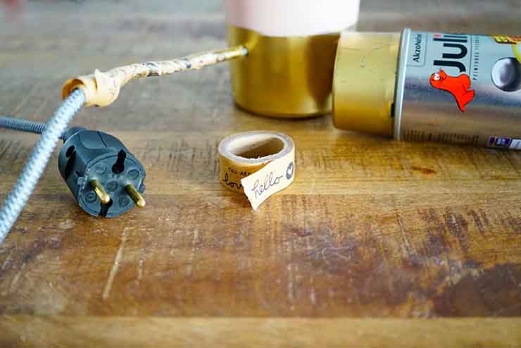 Dernière étape : la peinture du bas de la bouteille. Utilisez à nouveau du papier et du scotch pour protéger la première peinture, ainsi que sur le câble. Puis bombez le bas avec la deuxième couleur choisie. Laissez sécher et renouvelez si besoin.