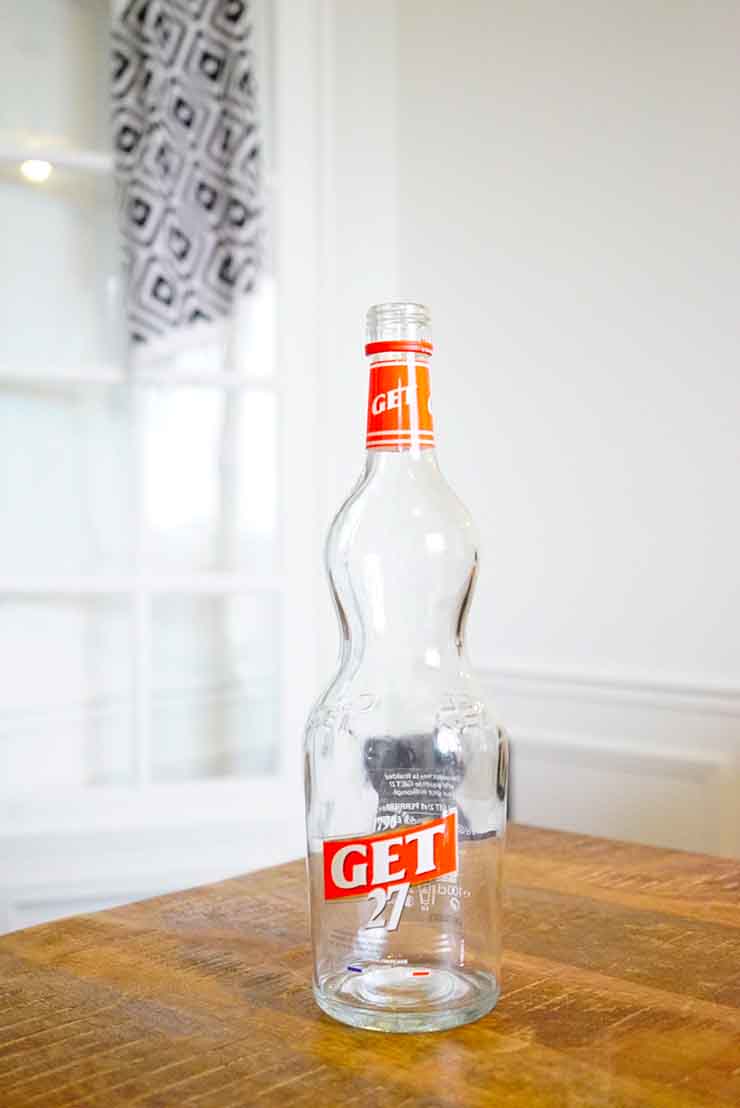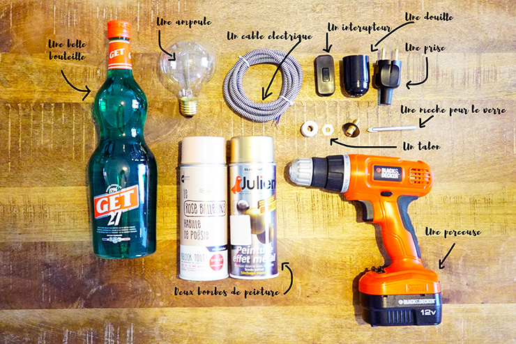 Pour créer cette lampe j’ai choisi une bouteille de Get 27 pour ses formes arrondies. Pour la petite histoire, le créateur de la boisson (Jean Get), a imaginé la bouteille il y a 150 ans à partir d’une lampe à pétrole vue dans un restaurant à Perpignan. Et la forme de la bouteille n’a pas changée depuis 🙂