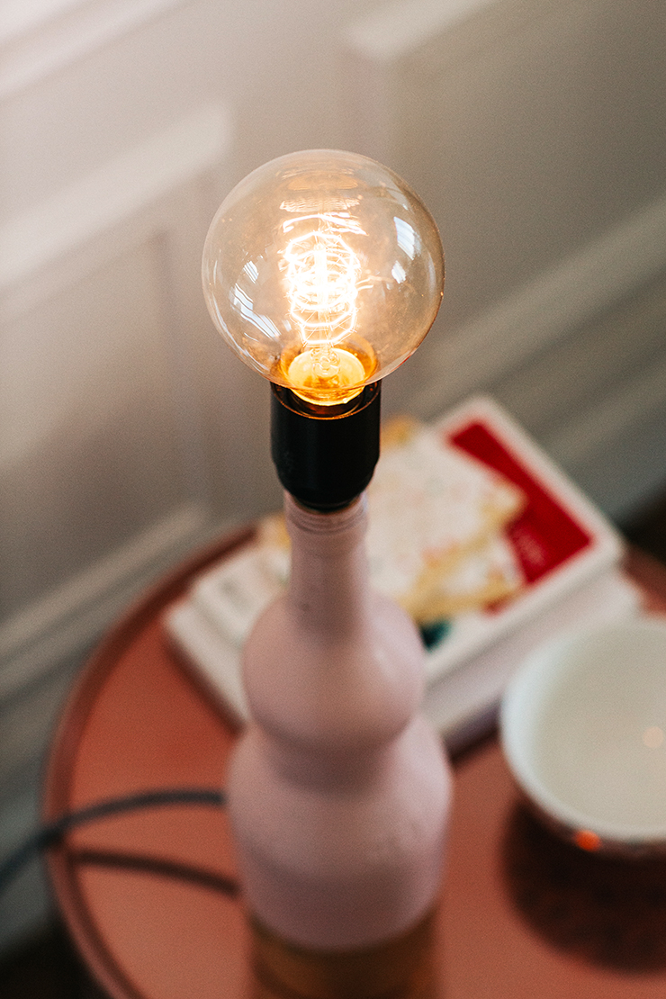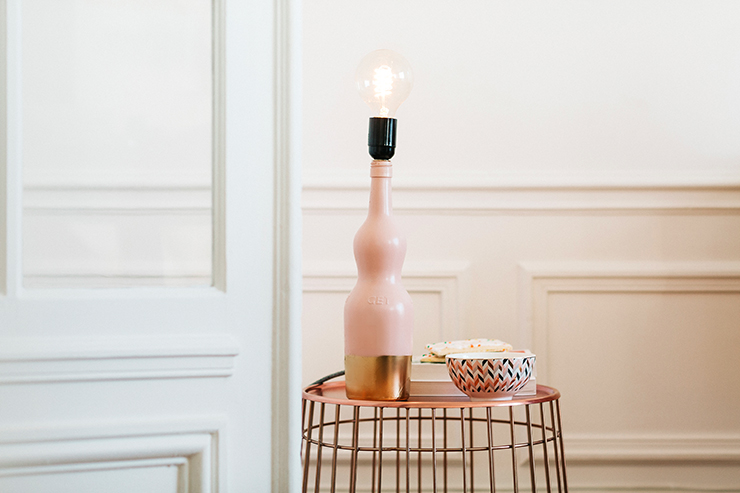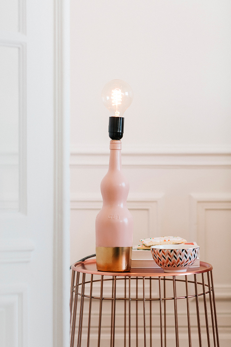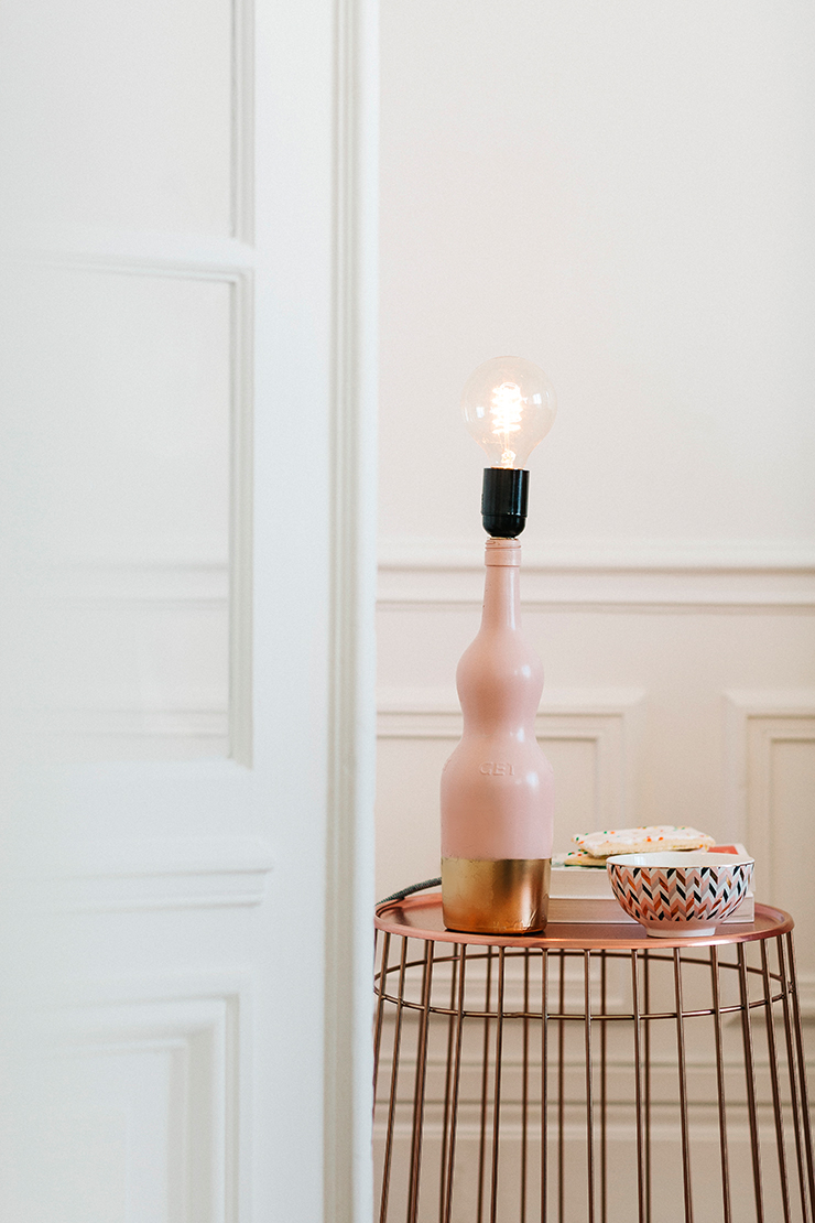 Un DIY déco! Une lampe à partir d’une bouteille, customisée dans les tons roses qui m’inspirent tellement en ce moment.