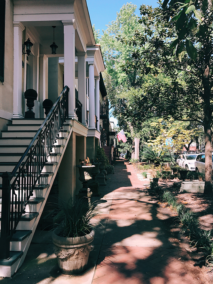 Mais j’ai également été séduite par la ville. Peut-être mon plus gros coup de cœur aux États-Unis. Savannah est la ville la plus ancienne du pays. Une ville à taille humaine si je puis dire, des maisons au style victorien, des petites boutiques, de délicieux restaurants, une promenade au bord de la rivière (river street), des parcs, des arbres absolument partout. Je me souviendrai de cette ville comme un endroit très vert avec des maisons majestueuses, colorées et des perrons sur lesquels on aimerait passer la journée. Et surtout l’atmosphère si paisible et heureuse. Plus que dans un film je me suis crue dans un roman.