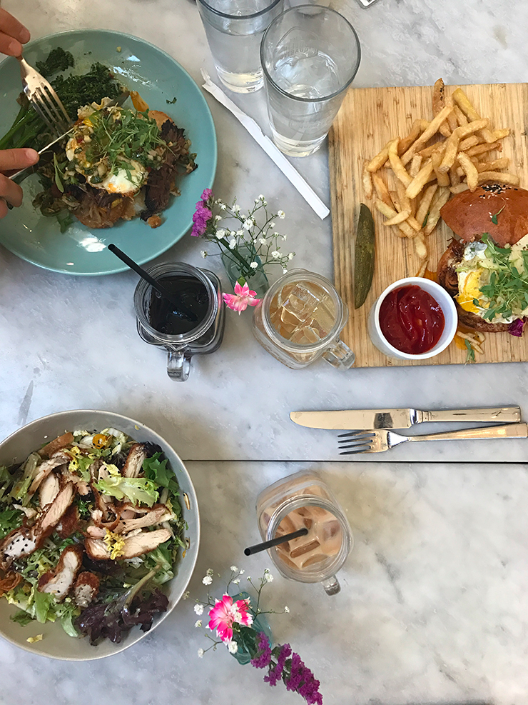 J’ai cru à une adresse healthy mais au Soho Café c’est surtout une bonne adresse pour un burger, un grill cheese ou encore un bol de maïs crémeux. J’ai commandé une salade qui c’est avéré être une pyramide mais on s’est tous régalés 😉 Heureusement que le doggy bag est une habitude aux États-Unis^^