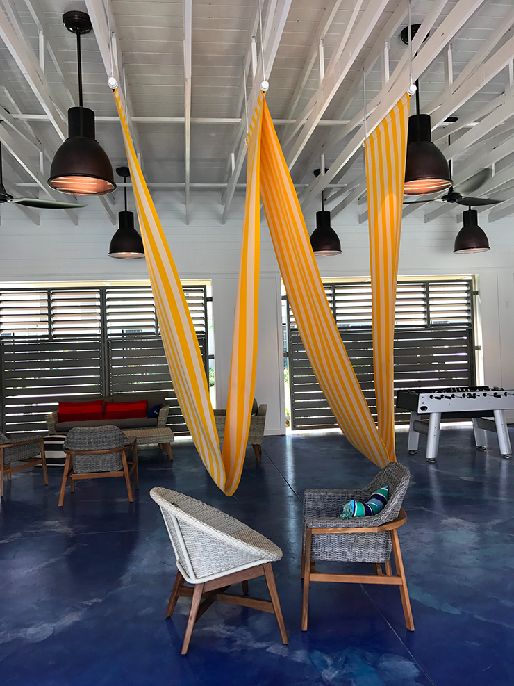 Espace détente pour les étudiants et piscine