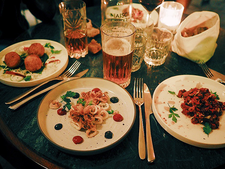 Nous avons partagé des petits plats, des tapas raffinées, une cuisine bistronomique. Comptez 2 plats/personne, entre 8 et 16€ l’assiette.