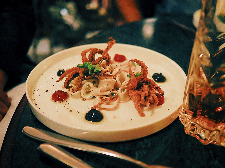 J’ai commandé les soupions (petites sèches) à l’ail et au persil qui étaient incroyables mais aussi la lotte au curcuma et son caviar d’aubergines. Cuisson parfaite pour la lotte, un délice.