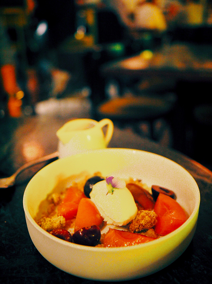 OUI j’ai bien sûr piqué dans l’assiette de Nico (vous me connaissez maintenant) et j’ai pu goûter la poitrine de porc et le crumble aux fruits. Miam miam miam. Je reviendrai pour le thon mi-cuit aux petits pois wasabi.