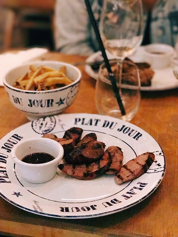 La jolie ginguette au bord de la Seine… j’ai adoré le lieu et SURTOUT la playlist. Au menu : grillades. Viandes (Côte de bœuf « Angus », côte de cochon « patte noire »…) ou poissons (filet de cabillaud sauvage, gambas sauvages grillées…).