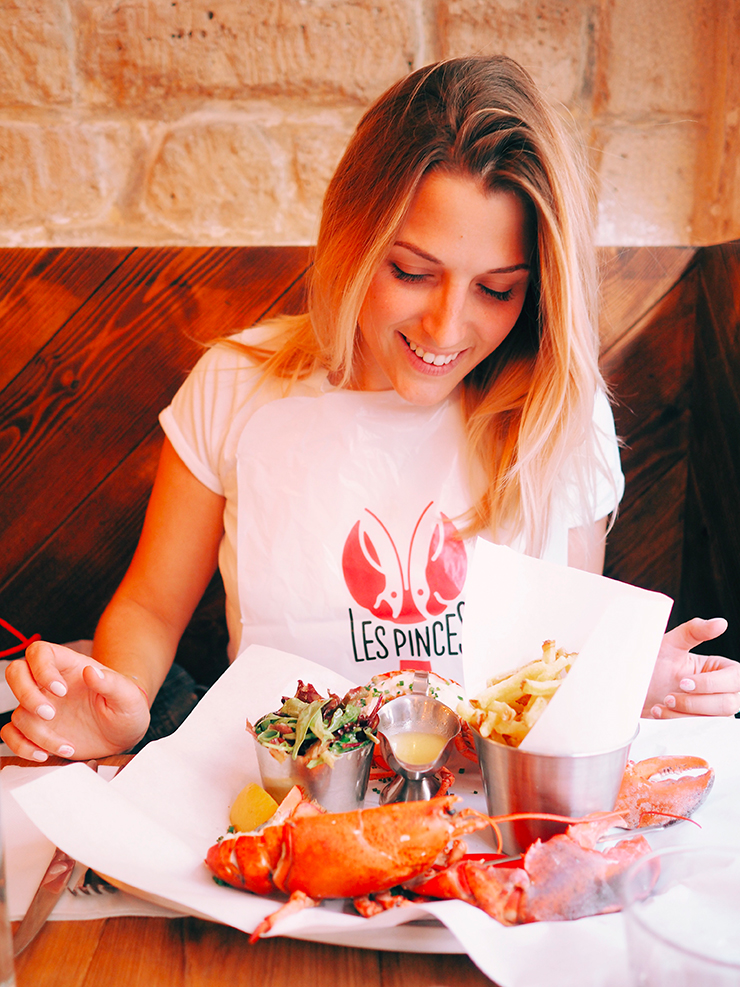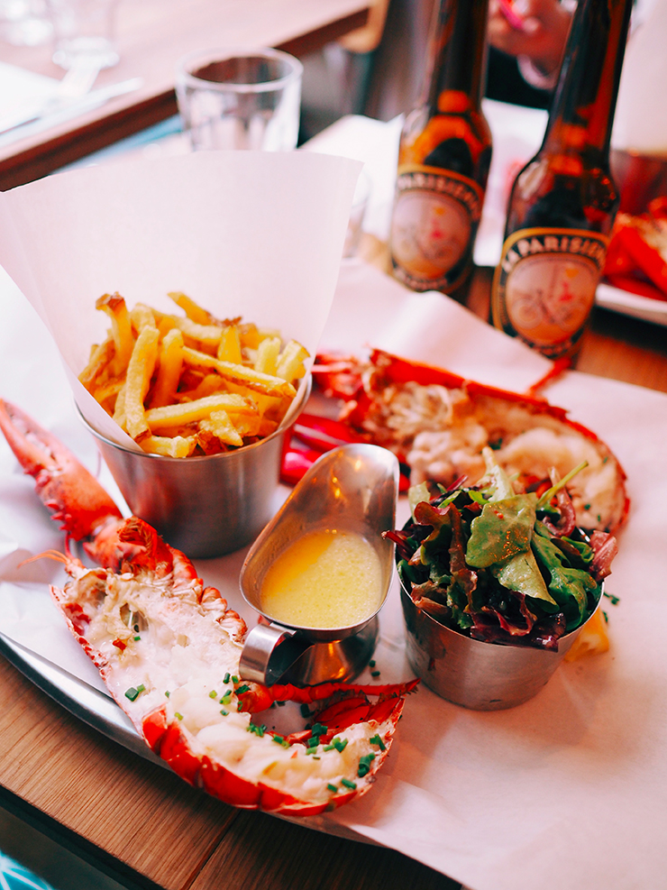 Si il y a bien quelque chose qui me fait me sentir en vacances ce sont les fruits de mer. Les pinces est une super adresse pour déguster du homard. Au choix : un homard entier rôti au four, en sandwich dans du pain toasté ou avec une côte de bœuf. Toujours avec des frites et de la salade.